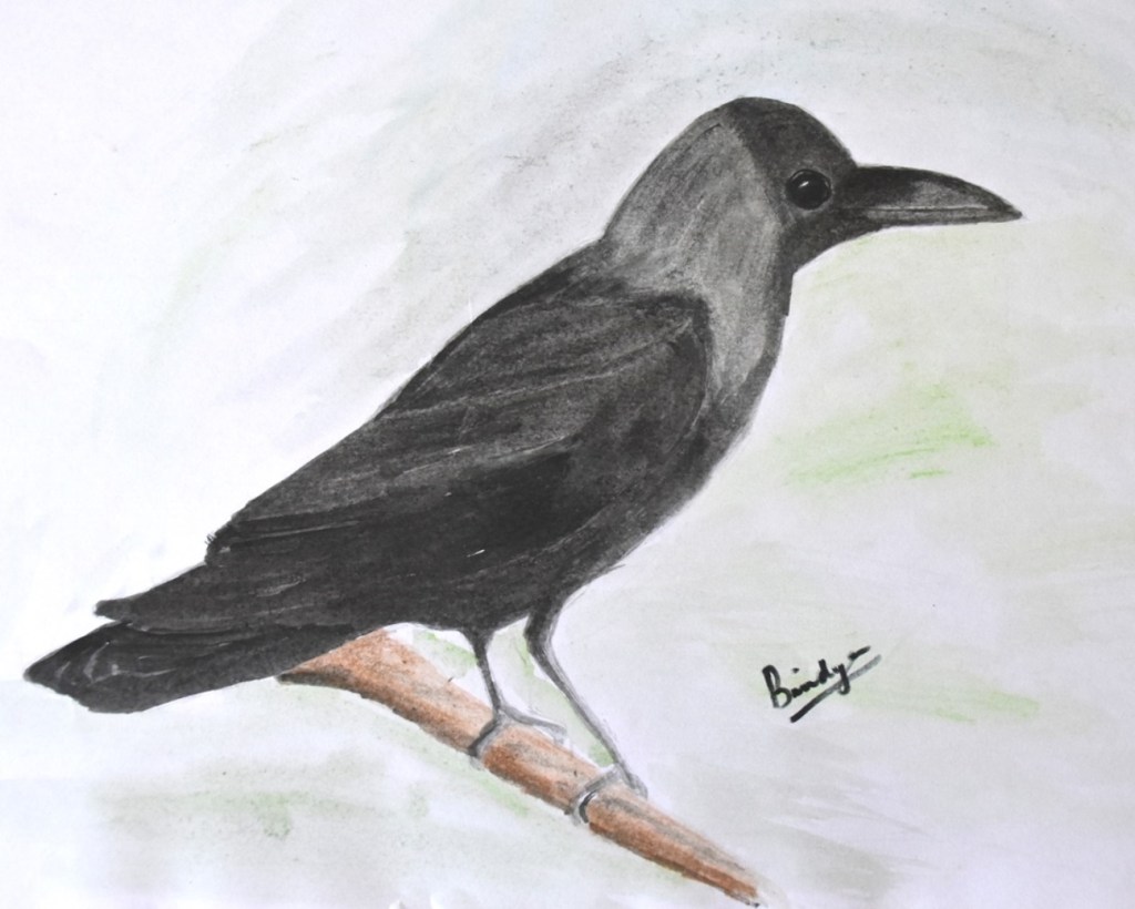 ……”.Crows pervade beliefs of Indian folk. Its guttural call, especially when sitting on a banana plant, heralds the arrival of a guest for meal. Its acceptance of preferred food accompanying ceremonies of funerals or on death anniversaries signifies the contentment of the departed soul.”7