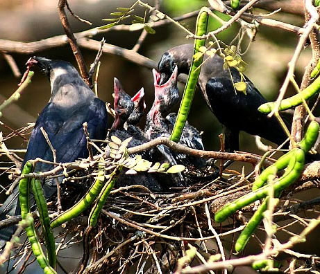 Roosting– A typical bird behaviour where a group of individuals congregate in an area for a few hours effected by environmental signals and return to the same site with the reappearance of these signals. Larger trees with greater canopy, nearby human habitation which provide them shelter and safety along with anthropogenic feeding opportunities and moderate vegetation patches near the roosting places were the characteristics preferred for roosting purpose by house crows.20 Roosting together allows sharing of information, such as the location of food sources (Marzluff et al. 1996). This is how it looks when crows roost on a tree.