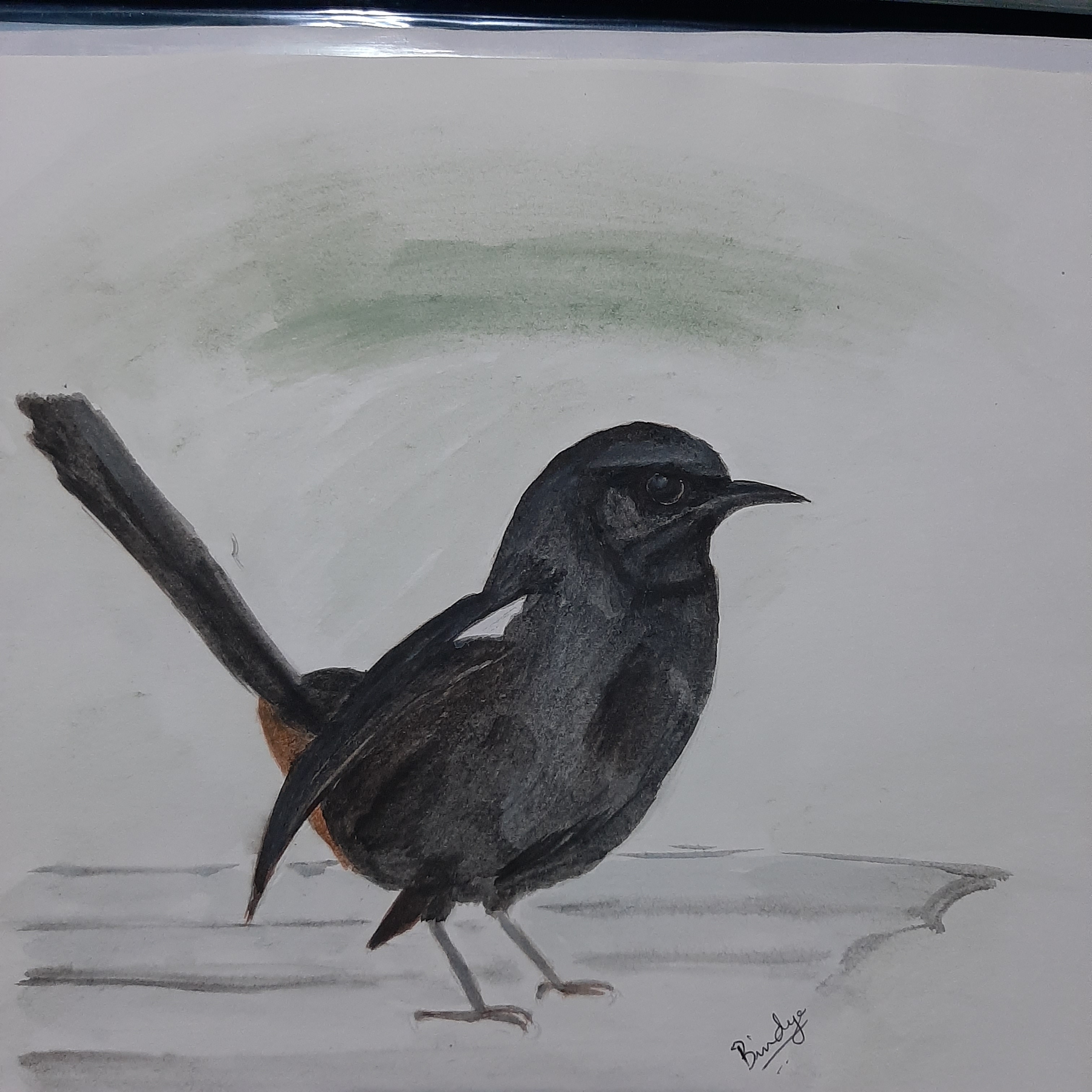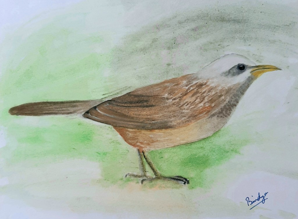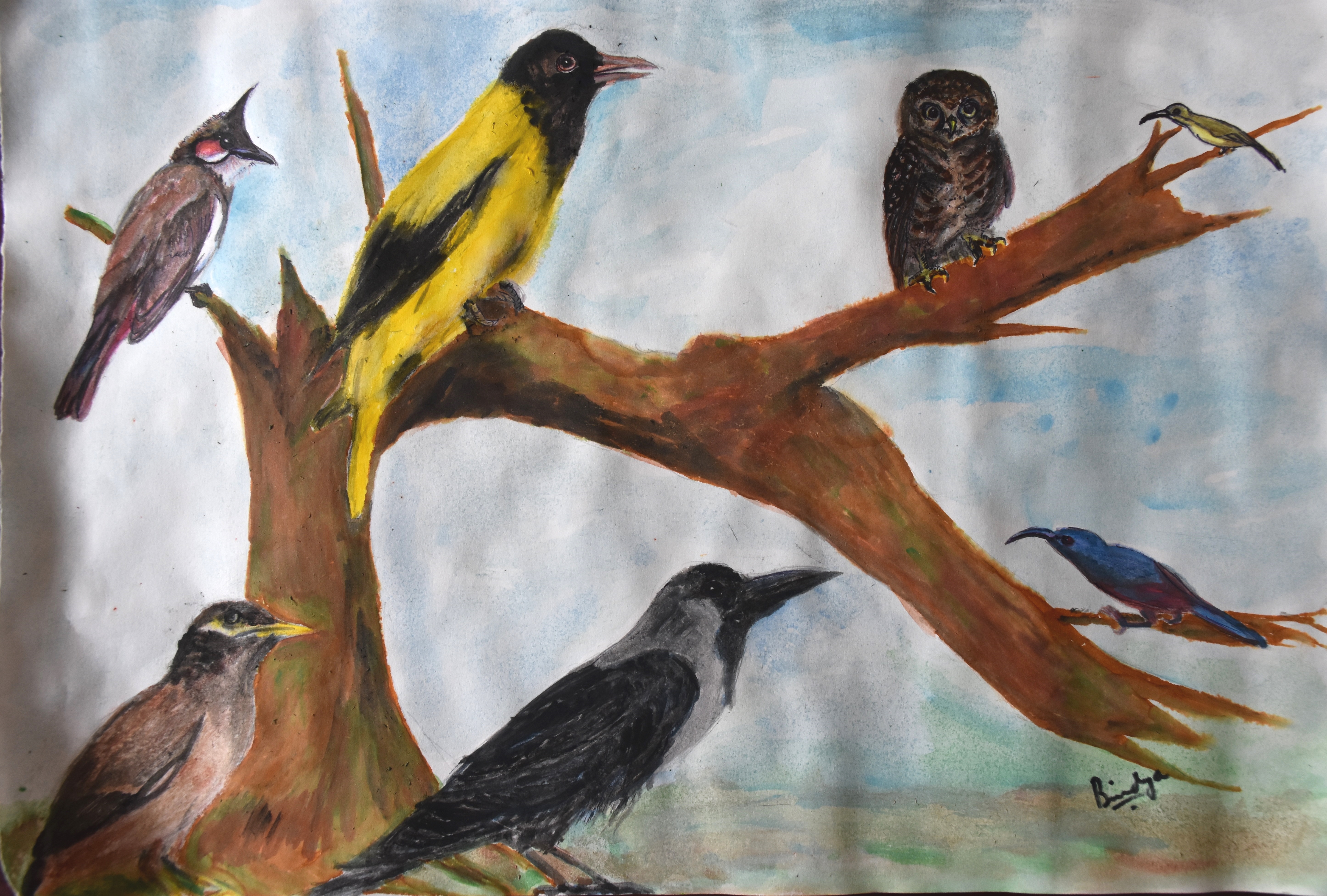 When I saw this bird first, I thought its a barbet, as it is small in size, until I googled to find details about it. It was found on a tree in the garden, perched not much away from ground level. I was amazed to find a pygmy wood pecker. I painted this picture using watercolor.