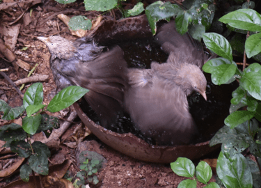 They love taking bath in broad water containers outdoors and preen themselves with their partners.