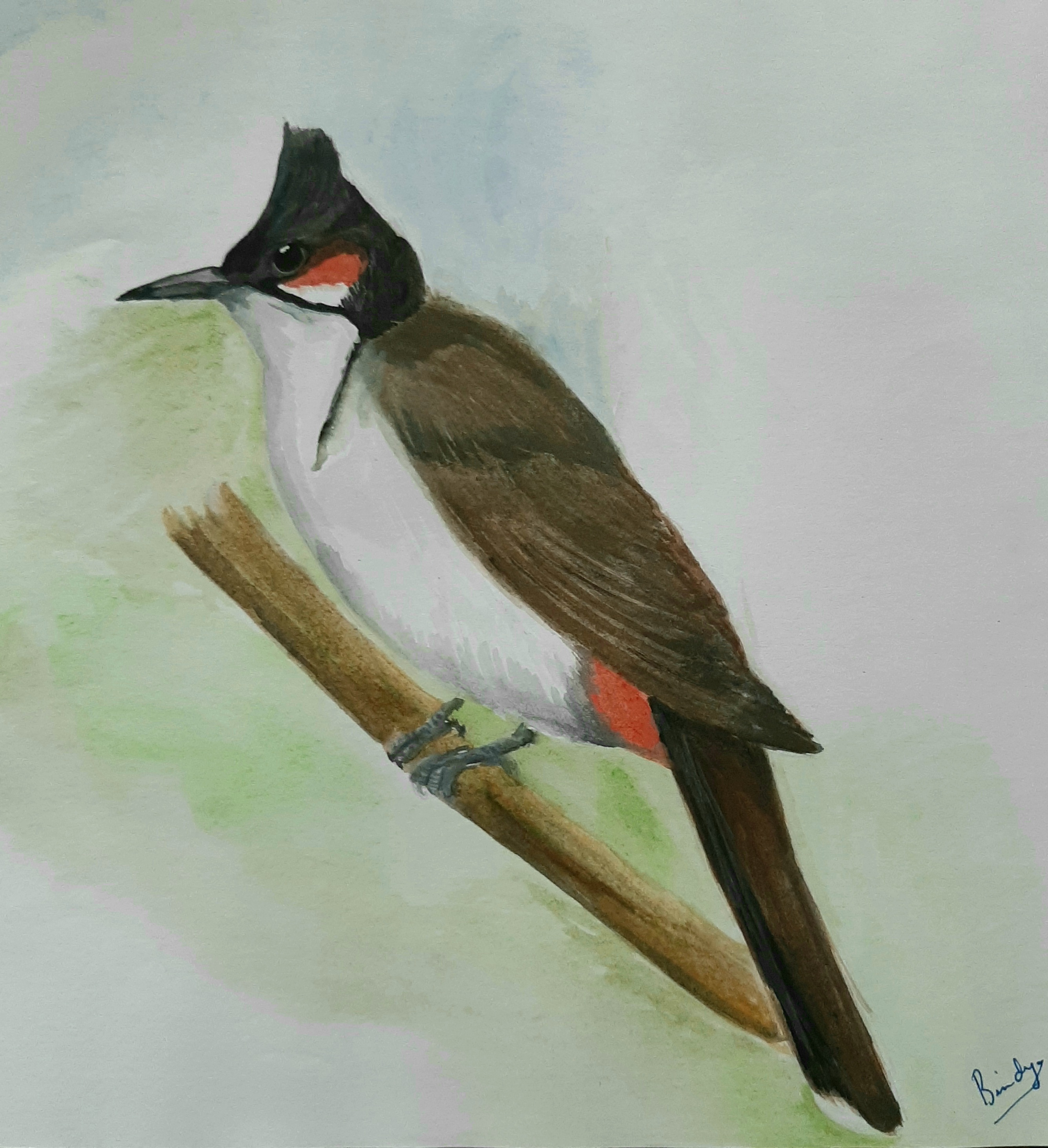 Red whiskered Bulbul- photographWater Colour Painting of Red Whiskered Bulbul