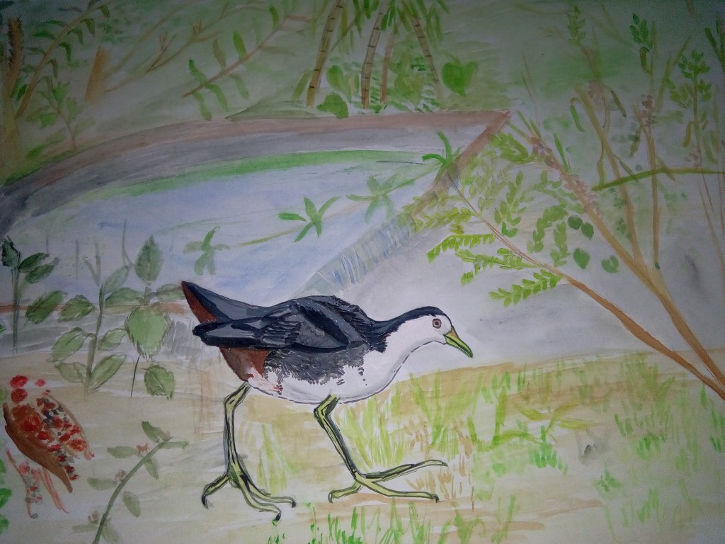 It was fun working with poster colors on this picture of Indian Pond Heron(non- breeding form) . I love those striations on its head, neck and breast. They are found near ponds and flooded fields.